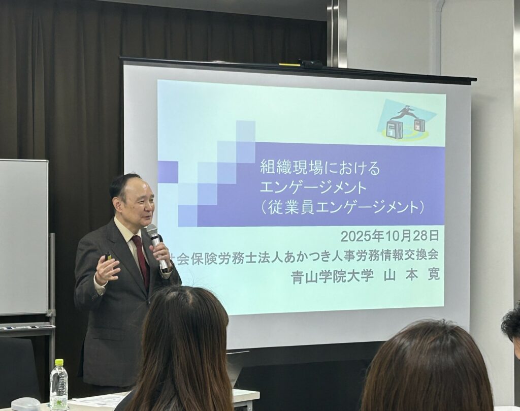 今回は青山学院大学名誉教授の 山本寛先生 をお招きし、「組織現場におけるエンゲージメント(従業員エンゲージメント)」 をテーマにご講演いただきました。